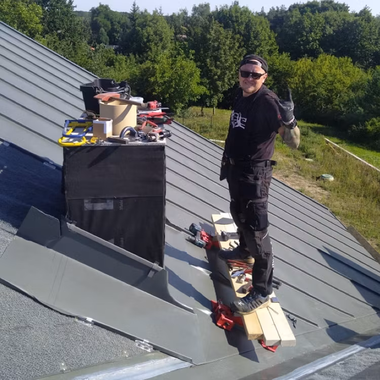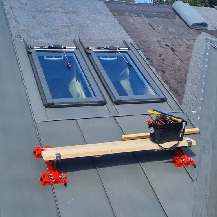 En helt ny revolutionerande konsol som fästs enkelt på falsen för att få en säker och stabil arbetsplattform på taket, och den är skonsam för plåten.