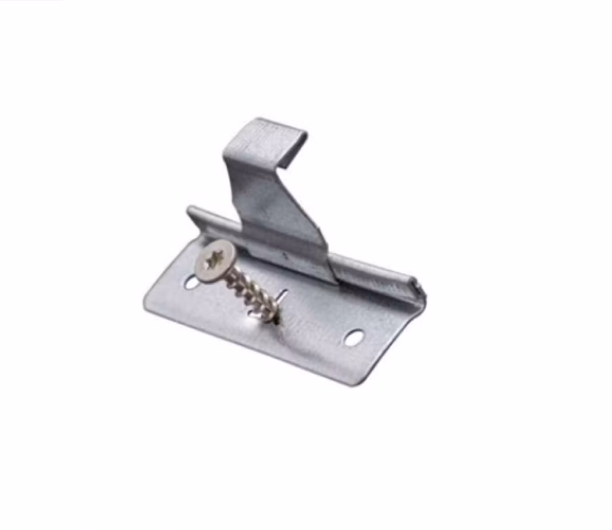 Glidklammer med förmonterad rostfri skruv. Torxspår T20. För fast montering av plåtband med dubbelfals .